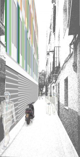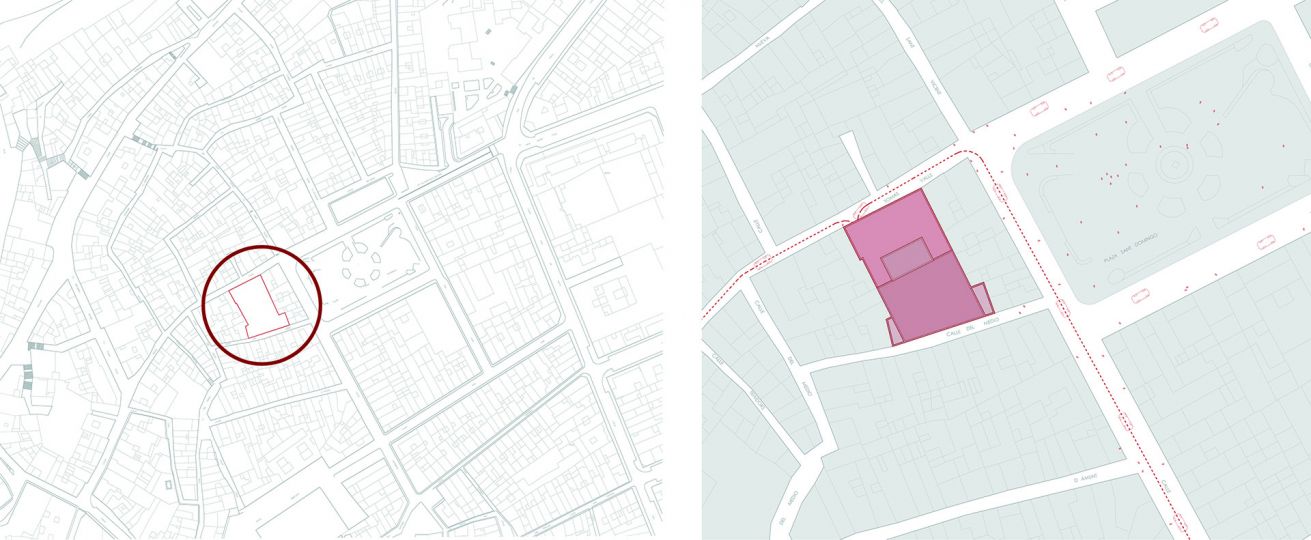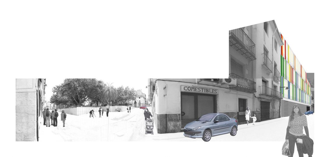 La propuesta se emplaza en un solar residual, de 680 m2, en la zona del Raval de Centro de Ontinyent. Esta operación de microcirugía urbanística se completará con la semipeatonalización de las vías circundantes.