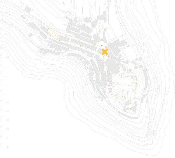 En contraposición, la propuesta parte de introducir entre los gruesos muros de piedra un volumen ligero, transparente y dinámico. Un cuerpo que capta la luz y las vistas sobre el paisaje. Una pieza que alberga los diferentes elementos de comunicación al tiempo que delimita los espacios requeridos por el programa. Un volumen que genera un recorrido a través del edificio hasta asomar al exterior, como un árbol que crece hacia la luz después de echar raíces.