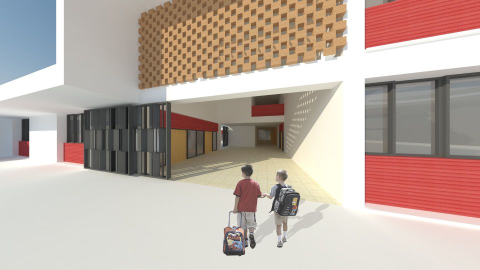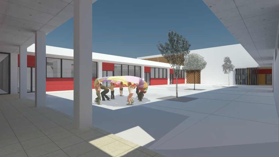 La actuación planteada se adecua al programa de necesidades planteado por Consellería de Educación, a las condiciones urbanísticas de la zona y a las diferentes afecciones-servidumbre que afectan a la parcela. Buscamos crear un edificio sostenible, que atienda a la orientación solar, a las ventilaciones cruzadas, a la necesidad de independencia de usos manteniendo una coherencia formal y que genere espacios flexibles y divertidos para los pequeños usuarios.