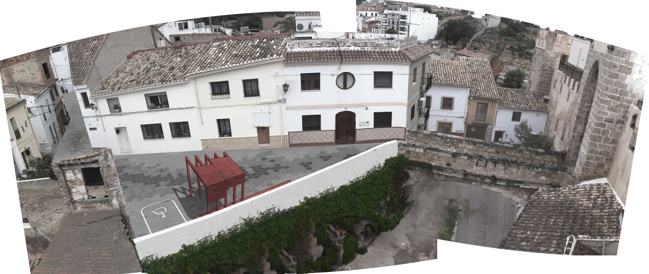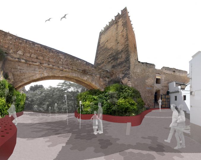 La principal premisa que se plantea es fomentar los recorridos y espacios urbanos del Castillo. Dentro de la abigarrada trama urbana del núcleo histórico de Buñol, el Castillo carece de presencia, ya que no llega a ser visible en toda su magnitud, y los recorridos de ascenso hasta el mismo no están claros. Nuestra propuesta parte de la ubicación de unos hitos urbanísticos formados por pérgolas semicubiertas, a modo de “puertas del Castillo”, que marcarán el inicio de los recorrido de ascenso; estas pérgolas se ubicaran en la Plaza del Castillo, en el espacio previo al Puente Norte y en las escaleras sur de bajada al pueblo.