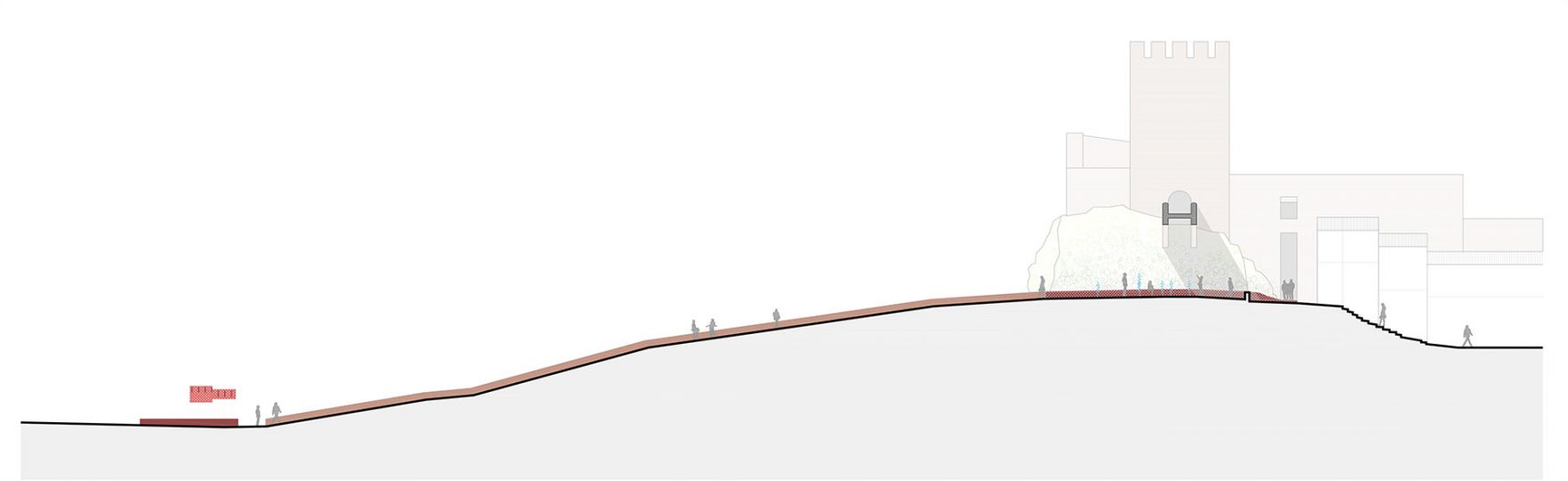 El objetivo del presente concurso es aportar soluciones para los espacios del entorno e interior del Castillo. La propuesta plantea la remodelación del acceso norte, desde la Plaza del Castillo, cruzando todo el recinto fortificado, y el acceso desde el parque de Borrunes, que asciende hasta el Castillo, y comunica esta zona verde con la trama urbana de la población. La solución adoptada, además de respetuosa con el patrimonio, pretende retomar la importancia que desempeña el conjunto histórico de Castillo en la población de Buñol y generar nuevos espacios que doten de fluidez y contemporaneidad al lugar, de un modo totalmente sostenible y de fácil mantenimiento.