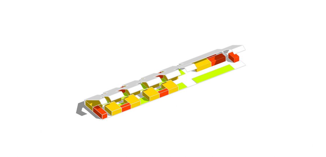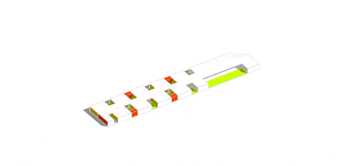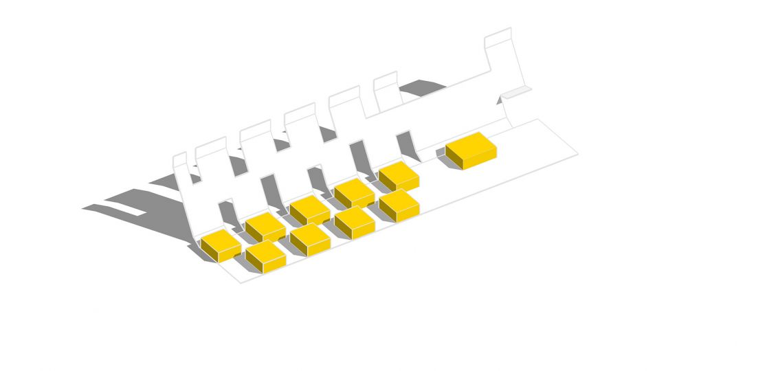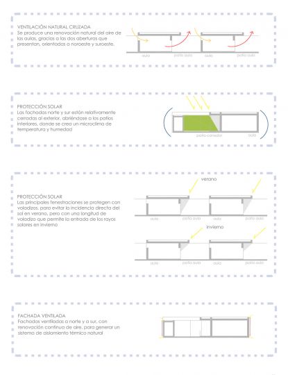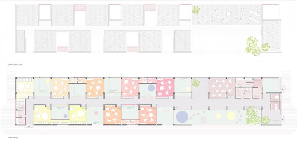 La propuesta se configura con una sucesión de cajas que albergarán las diferentes aulas bajo una gran cubierta perforada que permitirá iluminar los espacios interiores, fomentando la privacidad.