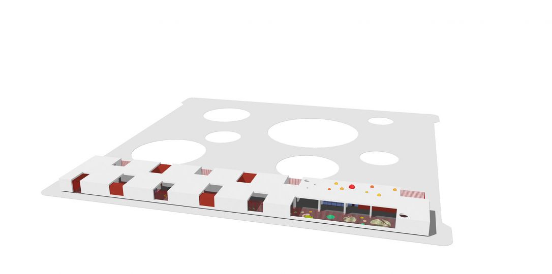 El objetivo del concurso es aportar soluciones para el diseño de una escuela infantil para niños de 0 a 3 años en una zona de expansión de Valencia, ubicada en una parcela cuya morfología alargada condicionaba la implantación.