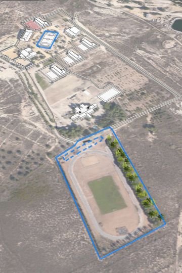 Entre las principales edificaciones del centro se encuentra una pista polideportiva al aire libre. Se plantea la cubrición de la misma para permitir el uso durante gran parte del año, independientemente de la climatología.