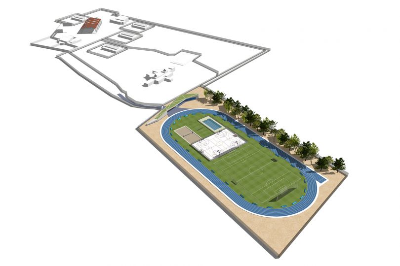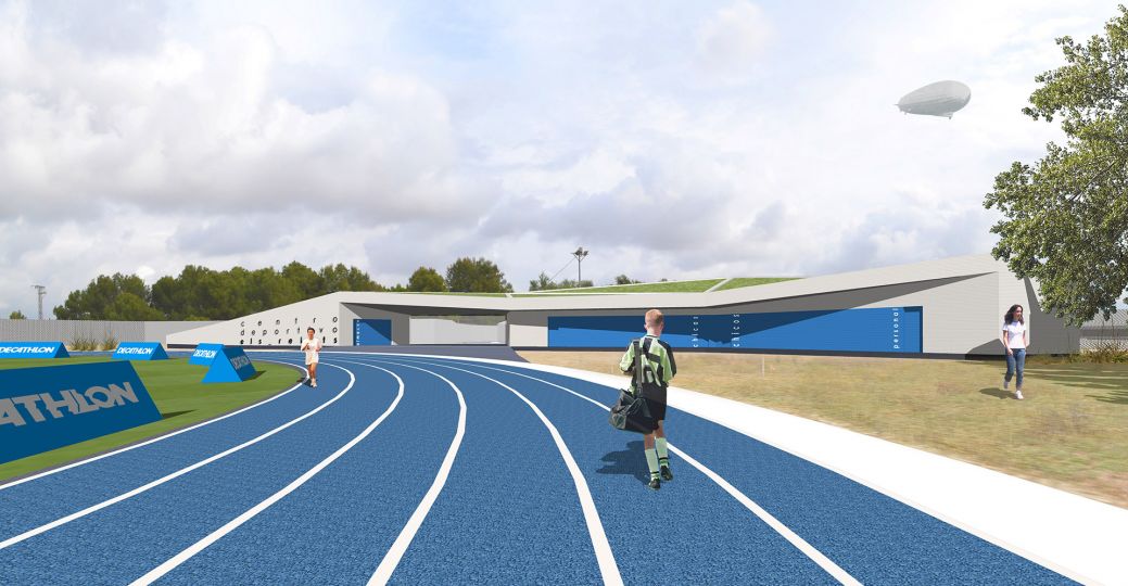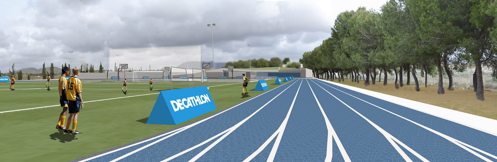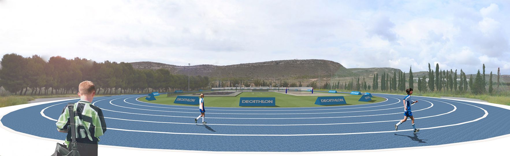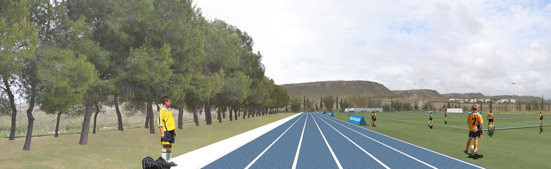 Se actúa sobre la pista de atletismo existente, actualmente en desuso por su degradación, construyendo en la zona central una pista de césped artificial para futbol 7, una pista para multideporte (futbol sala, baloncesto, …), piscina, arenero para vóley playa y zonas para desarrollo de otros deportes.
