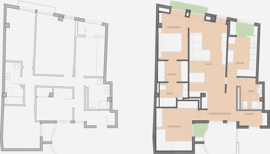 El proyecto cambia la manera de habitar un piso tradicional mediante pequeñas operaciones puntuales, aprovechando cada rincón como si de un puzzle se tratara. Se elimina parte de la tabiquería original para ampliar los espacios y reducir a máximos las zonas muertas de circulación.