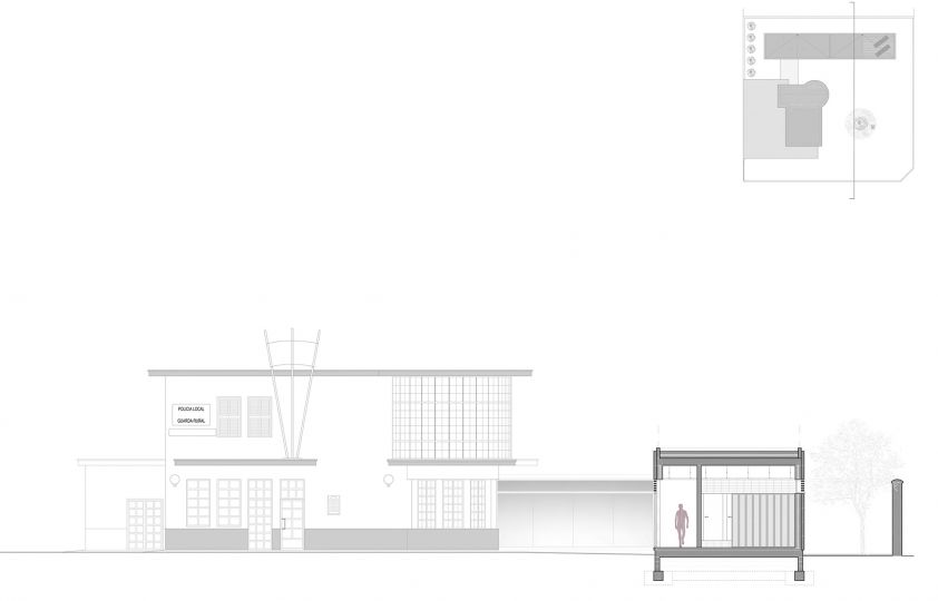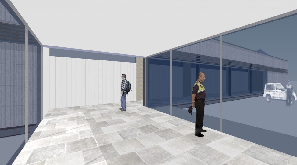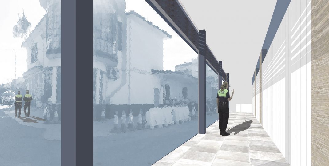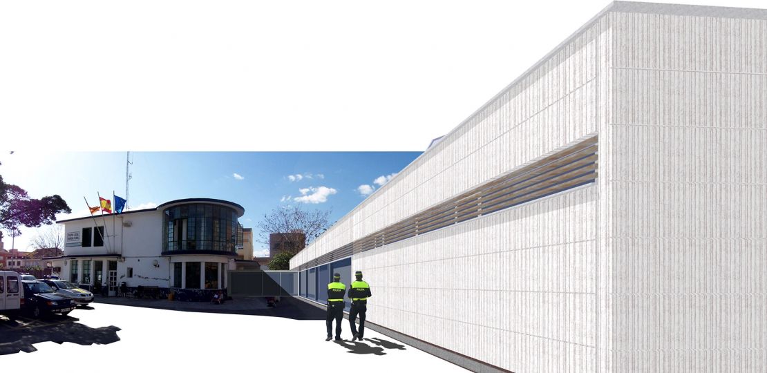 El objeto del concurso es la ampliación del reten de la policía local de Lliría. La solución contempla la construcción de un volumen anexo al edificio existente y dentro de la parcela del conjunto. El nuevo edificio contendrá exclusivamente los vestuarios del personal, dado el aumento de personal en el cuerpo de la policía local del municipio.