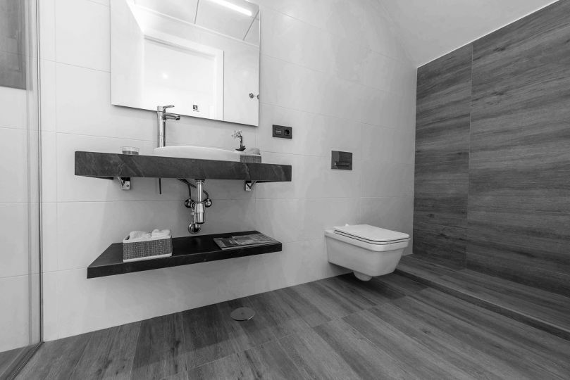 La rotundidad volumétrica de la vivienda se minimiza con el gran vuelo que protege el salón-cocina y la utilización de color blanco en el aplacado de fachada. El color blanco de fachada se rompe con un acabado en color madera en el núcleo de comunicaciones.